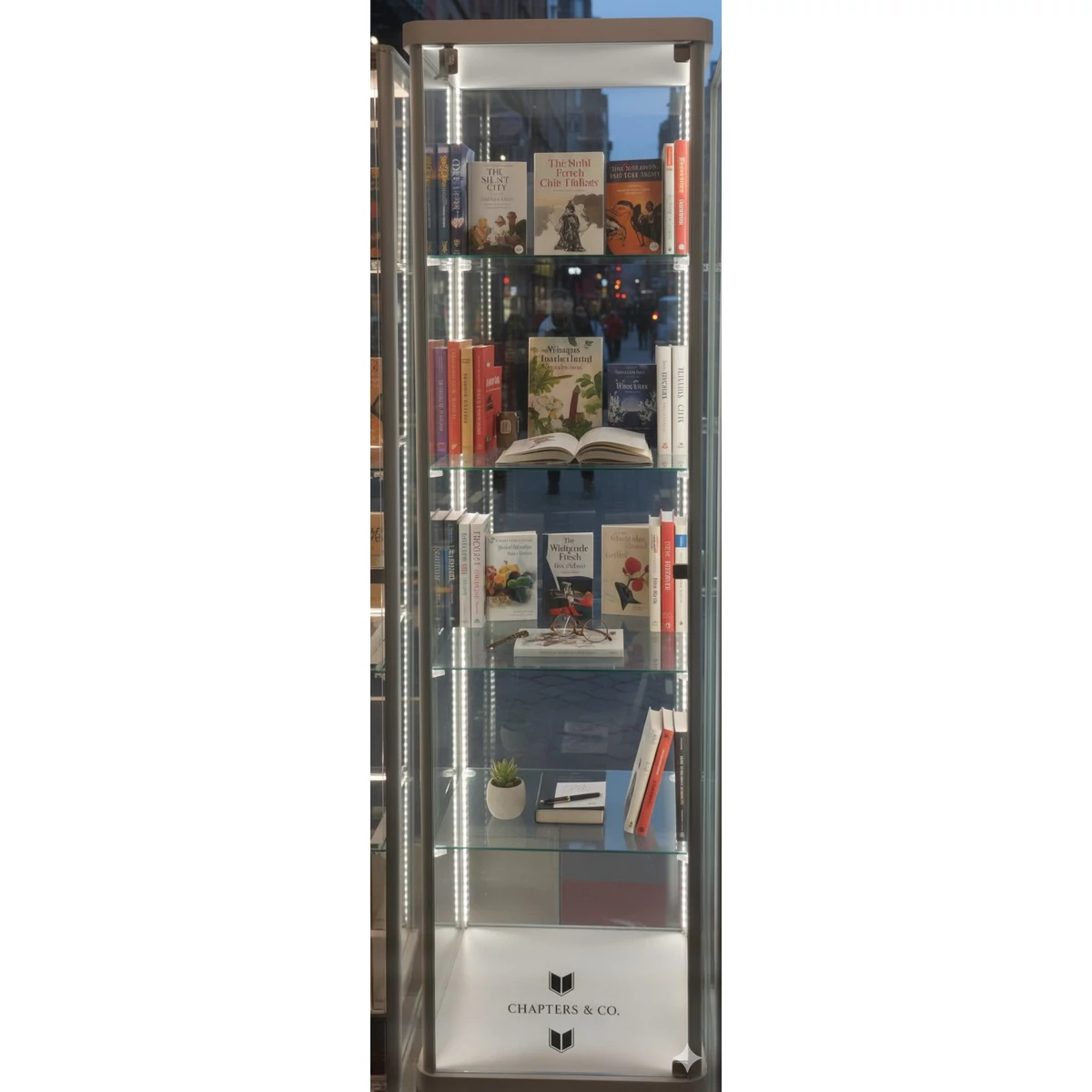 Negyedíves alumíniumvázas üvegvitrin VILÁGÍTÁSSAL. Első két oszlopban fut a világítás!