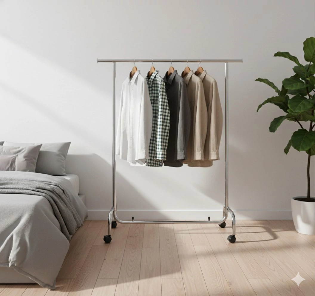 Ideális választás üzletek, bemutatótermek vagy otthoni ruhatároló rendszerek számára, ahol fontos a helytakarékosság és a mobilitás. Az állvány egyszintes kialakítása lehetővé teszi a ruhadarabok egyszerű és áttekinthető elrendezését, miközben 1000 mm-es szélességével gyakorlatilag bármilyen helyiségben kényelmesen elfér. Az állvány szerkezete masszív, megbízható alapot ad nagyobb mennyiségű ruha tárolására is anélkül, hogy elveszítené stabilitását. A tartó különlegessége a strapabíró gumikerék, amely lehetővé teszi az állvány csendes, padlókímélő és könnyed mozgatását.