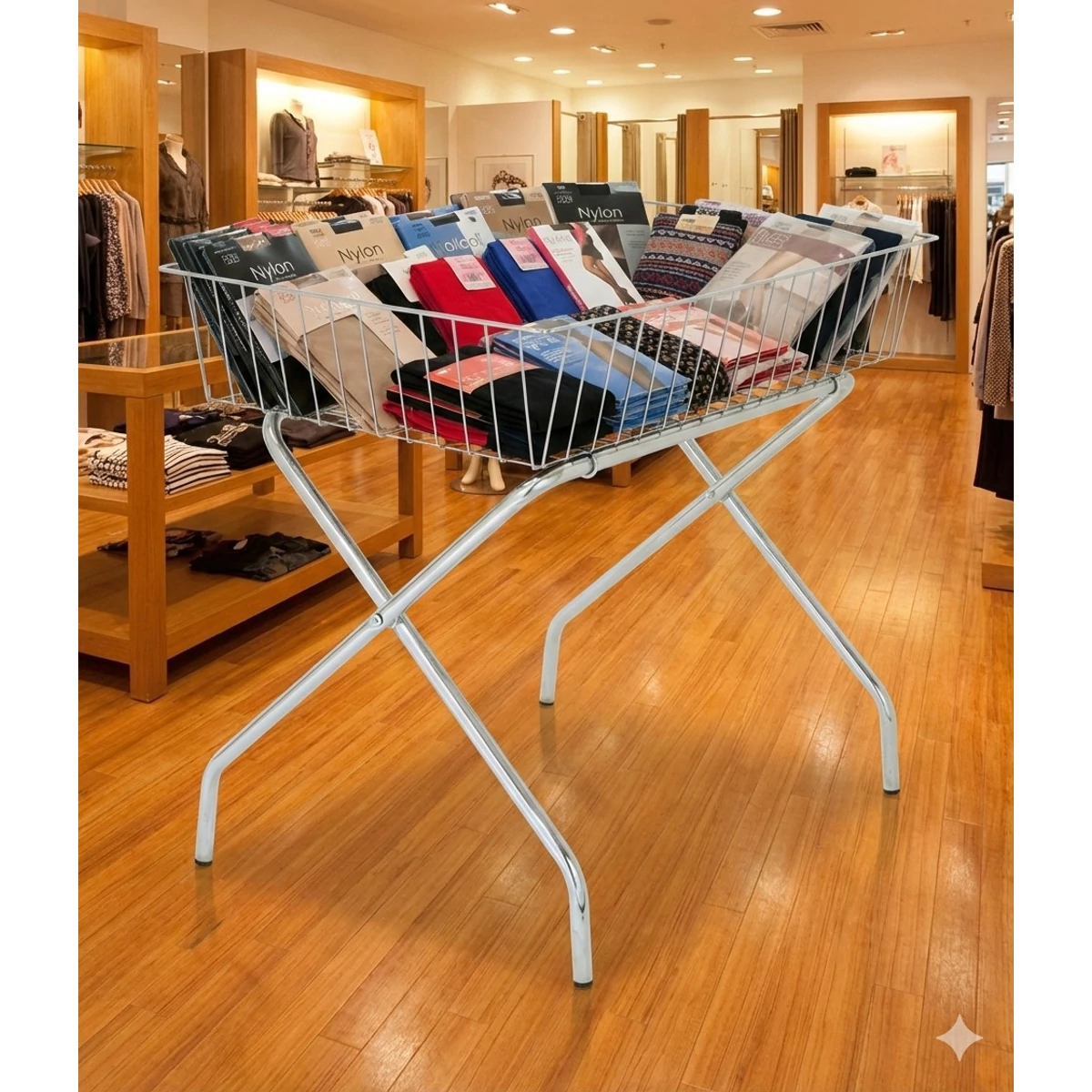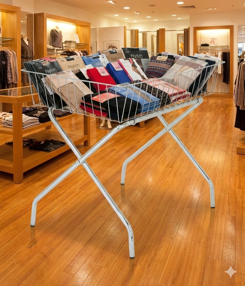 Kiváló választás üzletek számára, ahol fontos az áru gyors, átlátható és pakolható kihelyezése. A közepes méretű, 550 x 450 mm-es kosárban egyszerre jelentős mennyiségű áru fér el, legyen az ruha, háztartási cikk, játék vagy bármilyen akciós termék. A 200 mm-es kosármagasság kényelmes pakolást és könnyű átnézhetőséget biztosít, így a vásárlók gyorsan rálelhetnek a keresett termékre. A kosár szerkezete stabil és tartós, a minőségi krómozott felület pedig nemcsak esztétikus, hanem hosszú távon ellenáll a mindennapi használatból fakadó terhelésnek és a korróziónak is.