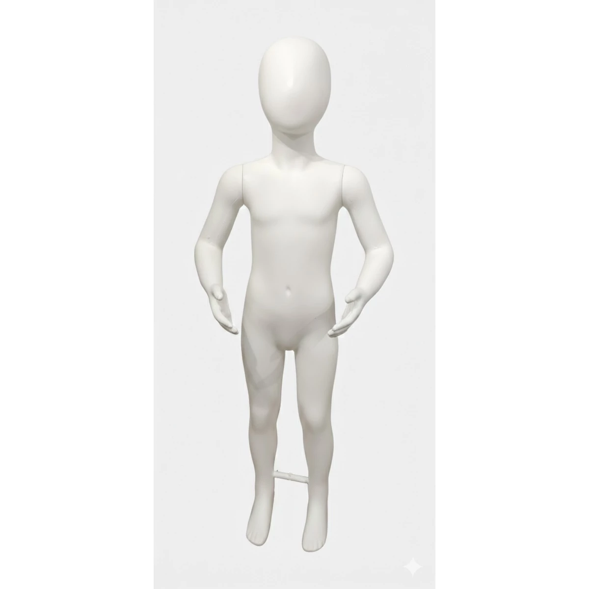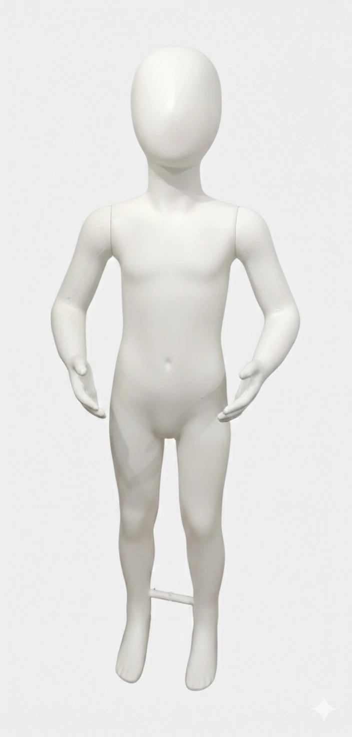 UFO fejű, GYERMEK kirakati baba, FEHÉR PVC, 114 cm magas, HAJLÍTOTT karokkal