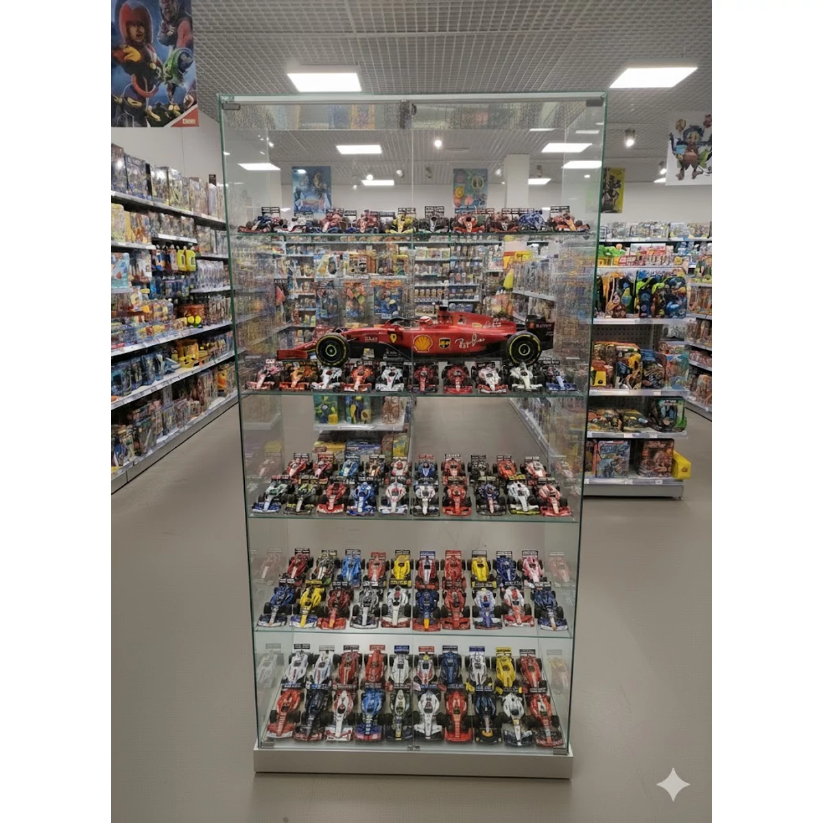 Nyílóajtós, keret nélküli, álló vitrin EDZETT ÜVEGBŐL, 932 mm JUHAR